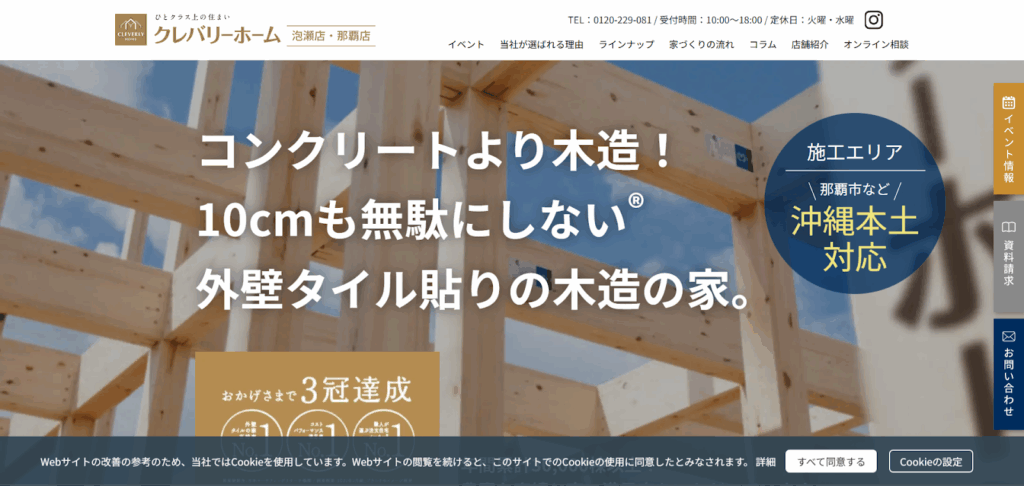 クレバリーホームは、沖縄県の中部地区・那覇市を中心に展開する注文住宅専門メーカーであり、石垣市などの離島エリアにも対応しています。